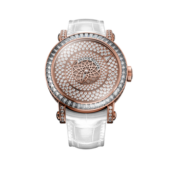 The Round Triple Mystery watch boasts a 39 mm rose gold case.